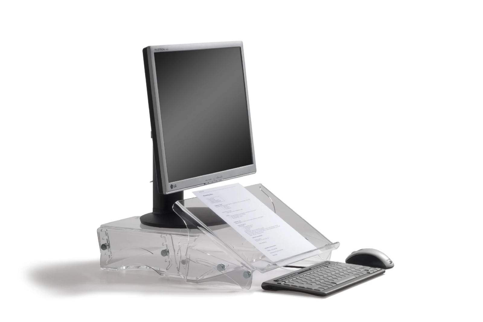 Most desktop users work with their computer and documents at the same time. A document holder should be positioned so as to minimize uncomfortable head and eye movements, preferably while in a balanced posture.