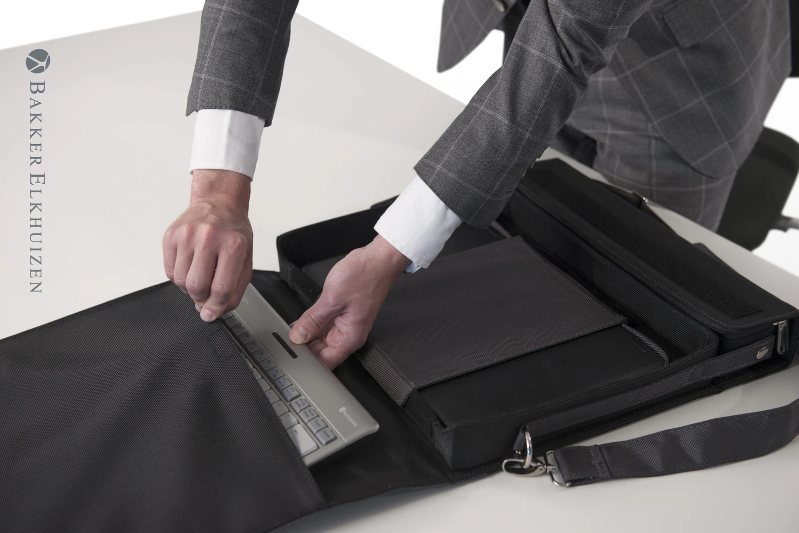 We are increasingly using laptops while on the go: in the train, during a flight, at the boarding gate, in a hotel lobby or even in the back seat of a car. Creating a comfortable place to work in these locations often proves impossible. This is why Bakker Elkhuizen is introducing the ErgoTraveller.