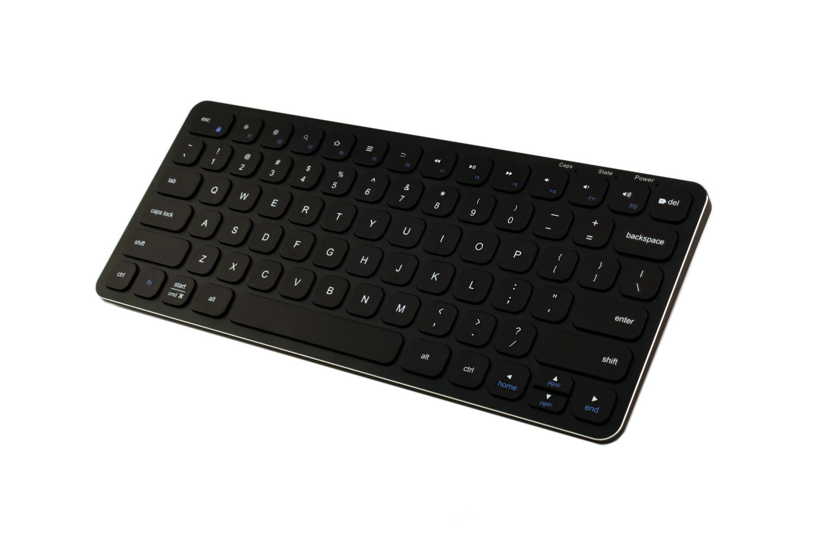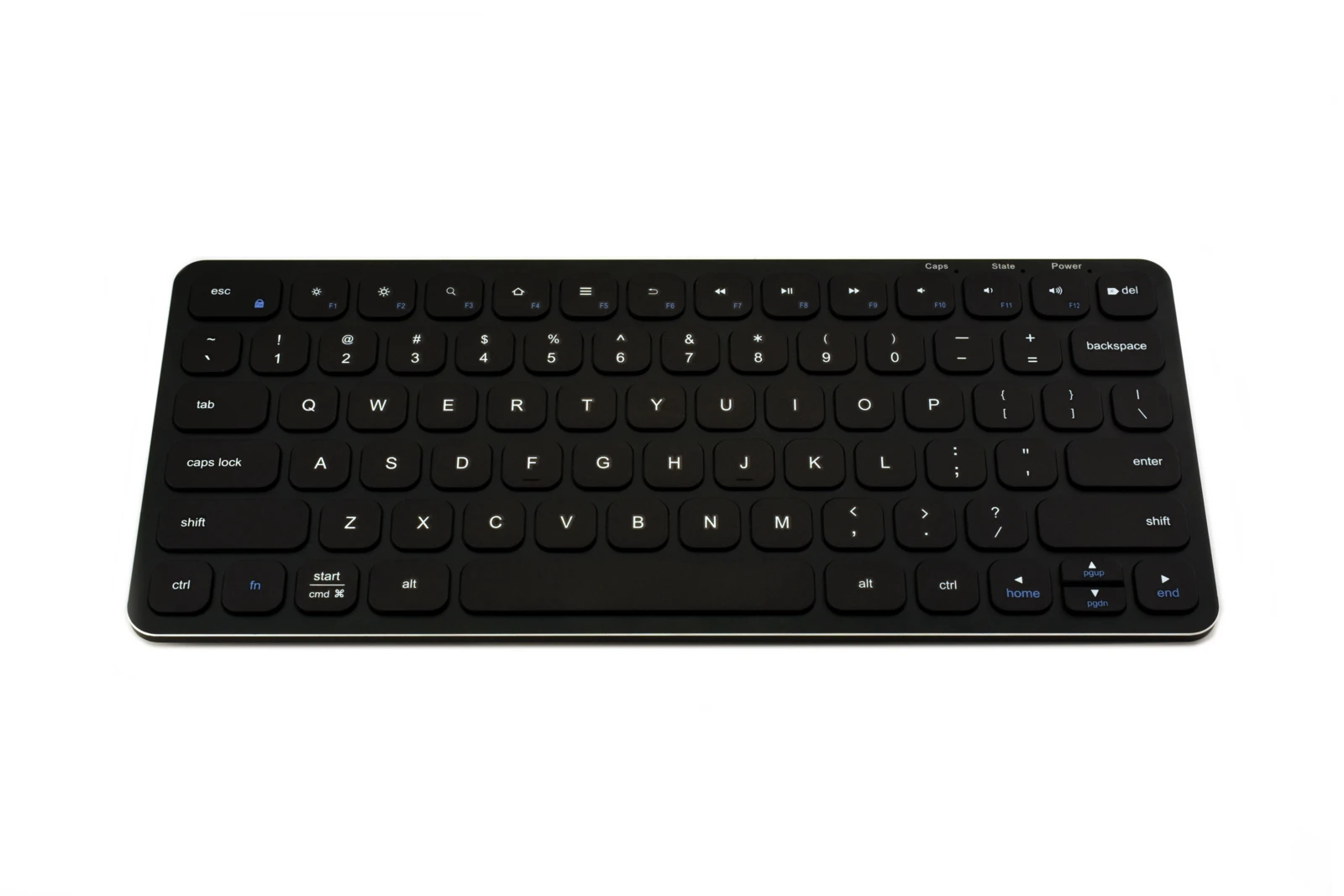 The Ergoapt Compact Keyboard’s size reduces the number of keys that the keyboard has. The keyboard still features many functions that a full-size keyboard via keys with dual functions. The Function Key allows for these functions to activate. The entire case of the Ergoapt Compact Keyboard is made of aluminium. This construction provides a solid feel, additional weight and removes case flex.