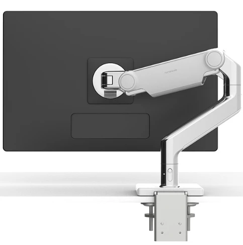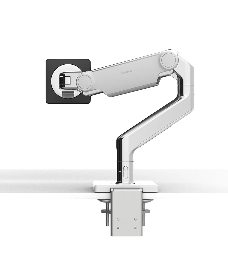 In today’s fast-paced, agile work environment, there’s no time for discomfort. M8.1, part of Humanscale’s revolutionary new monitor arm line, instantly improves the comfort, health and productivity of any workspace. The M8.1 supports a better working posture and creates more usable desktop space as well as helping maintain a clutter-free working environment. Its quick release, press and connect design makes assembly a breeze and eliminates the need for most Allen keys. It also has a revolutionary stop mechanism at 90° or 180° that prevents wall damage from over-rotation, or can be set for full 360° rotation.