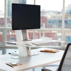Ollin’s Technicord also encourages correct posture when using sit to stand desks. The easy fingertip adjustment means the user can control the exact monitor height as they move from a seated position to a standing position and back again. Smooth and easy portrait to landscape adjustment and back again.