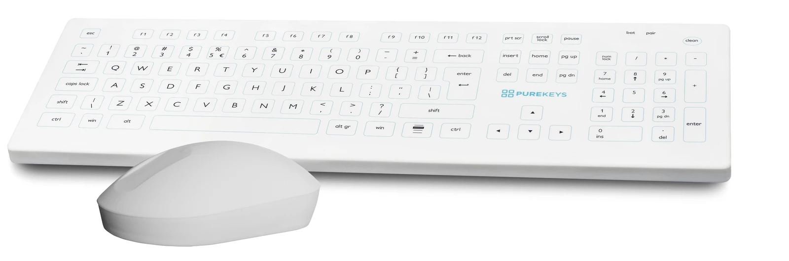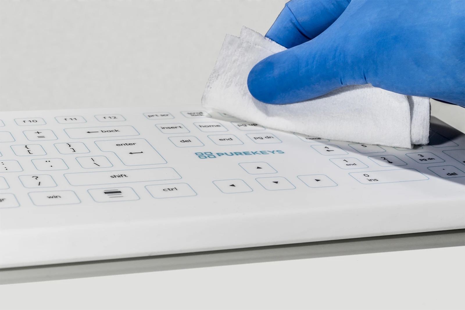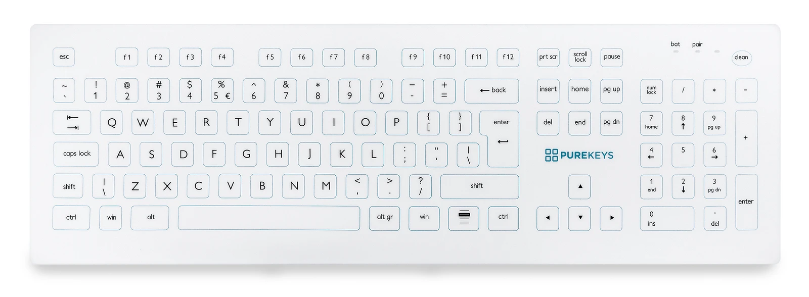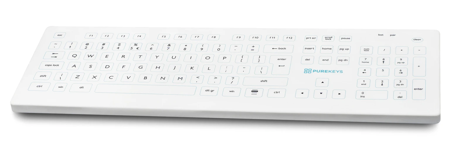 All Purekeys medical keyboards combine a completely flat top with the tactile feedback of a normal keyboard.